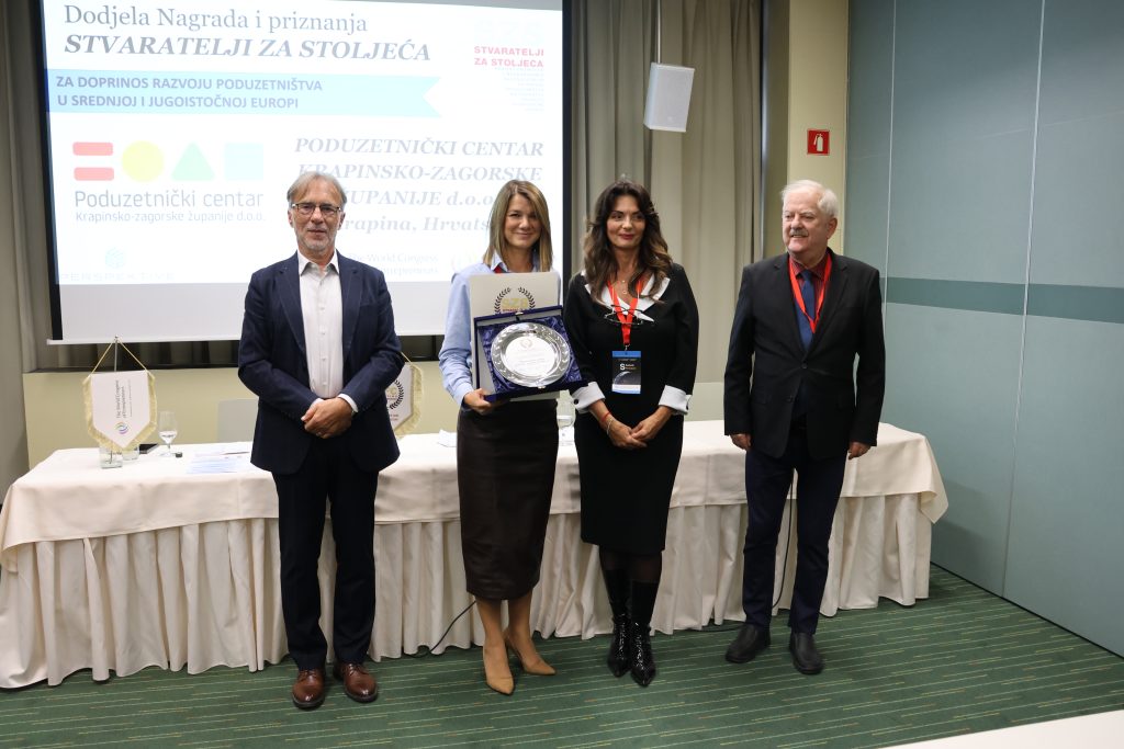 Dodjela nagrada održana je u sklopu velikog kongresa poduzetnika, koji se od 14. do 18. listopada 2025. održava u Sloveniji – u Ljubljani i Rogaškoj Slatini. Nagradu je preuzela direktorica Poduzetničkog centra Helena Matuša, koja je tom prilikom održala i izlaganje o radu Centra. „Kroz podršku poduzetnicima, stvaranje novih programa i snažnu suradnju s lokalnim zajednicama, pokazali smo da se održiv i uključiv razvoj može graditi i izvan velikih centara. U ime cijelog tima zahvaljujem na povjerenju i podršci svim našim suradnicima te našem osnivaču – Krapinsko-zagorskoj županiji.“, poručila je direktorica Matuša.